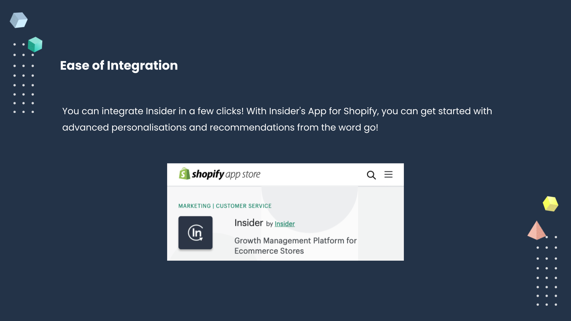 Insider’s AI-backed software packs a powerful punch with an extensive display of features. But for some of the simpler websites and merchants on Shopify, we understand that our exhaustive list of features may not be required. So how do we still provide our signature Insider excellence through more simplified delivery? With a simply awesome, potent plugin on Shopify of course! In under five minutes, our Shopify plugin integrates handily into your website functionality. From there on, in about ten days, it delivers fast results.