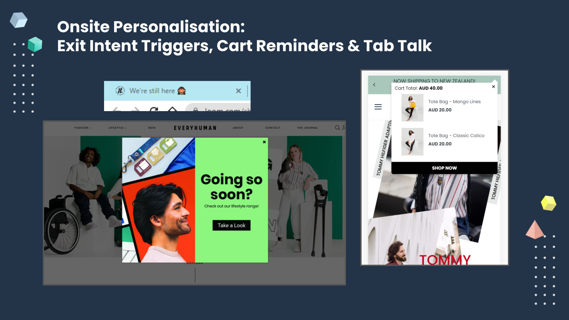 Tab Talk is one of the most liked features by the EveryHuman team. Tab Talk offers a fun and engaging way of conversing with website visitors who have left the website but still have the browser’s tab open. This is a great, attention-getting way to attract customers to return to their shopping experience. The message can be tailored to anything you’d like, adding to the overall experience of the website.