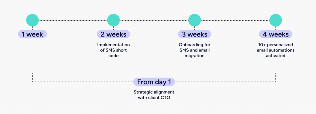 This includes everything from guiding you through the setup to analyzing your customer data, providing relevant tactics and strategies, and migrating journeys from other platforms to our platform.