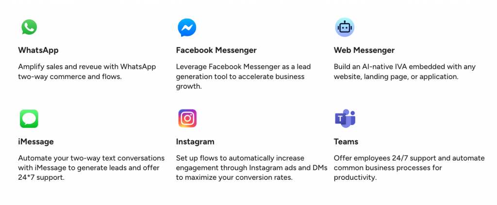 – Conversational CX—supporting two-way messaging, chatbots, and even commerce via SMS and WhatsApp