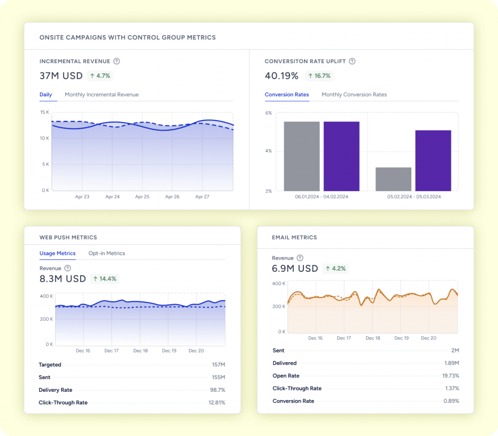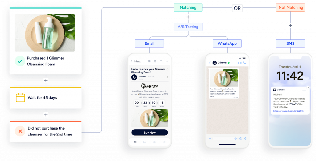 – Seamless integration with 12+ channels (including email, WhatsApp, push, and more)