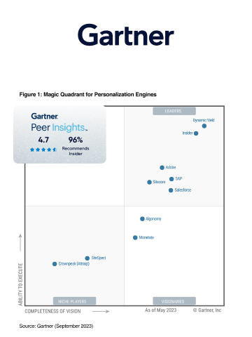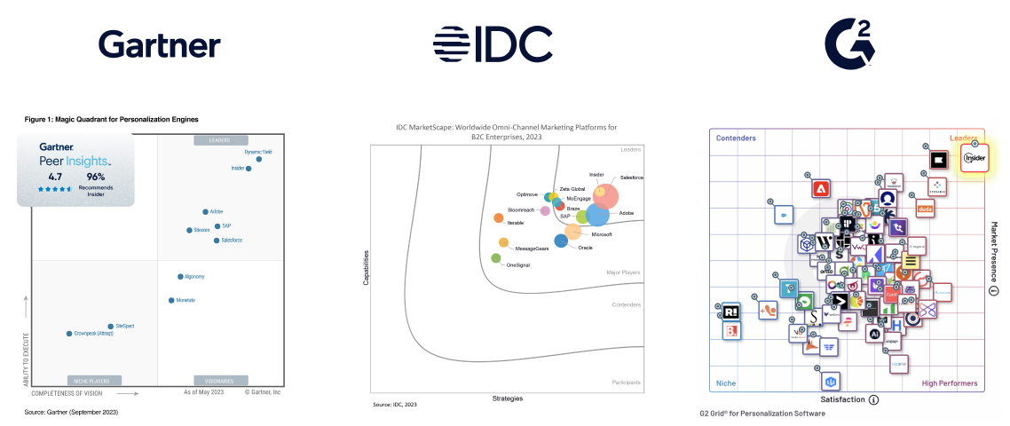 Las capacidades de personalización y optimización cross-canal de Insider, impulsadas por la IA, son valoradas por los especialistas en marketing y reconocidas por los principales analistas.