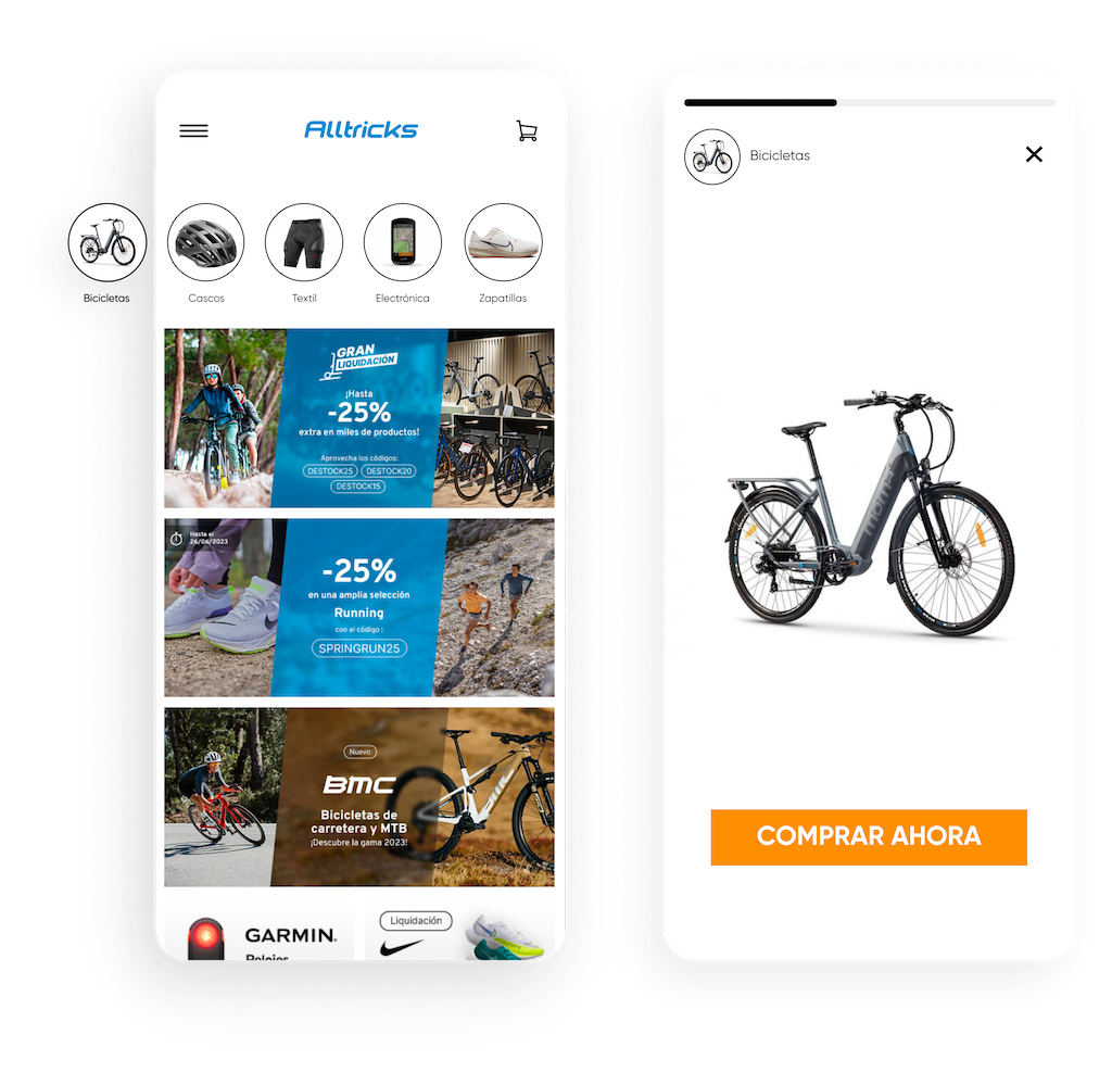 Aumenta la visibilidad y mejora el descubrimiento de productos a través de la navegación como en redes sociales. Con InStory, puedes personalizar stories según los intereses o el comportamiento de los usuarios; las imágenes se expanden en una experiencia inmersiva que tus clientes amarán.