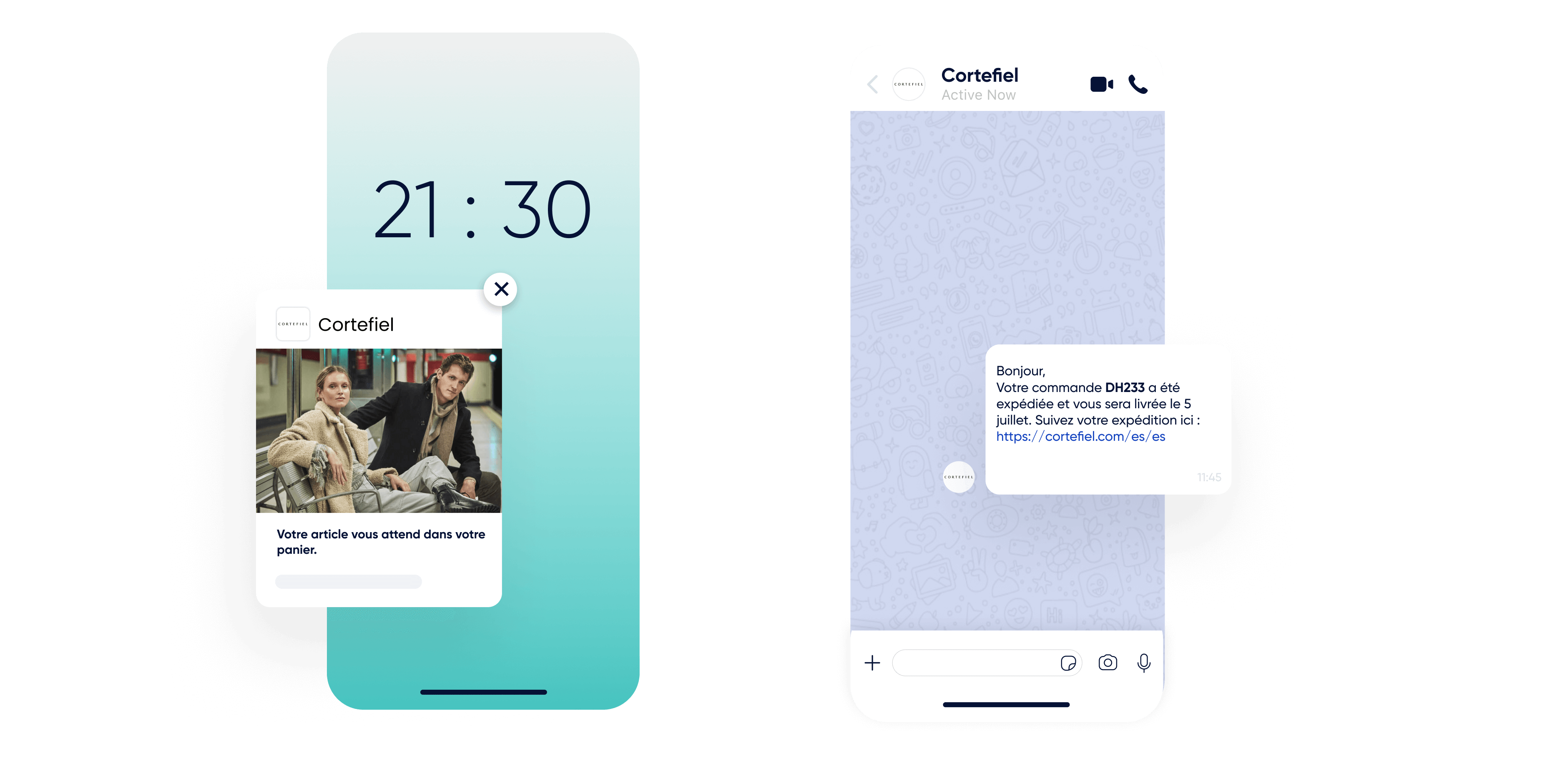 Utiliza notificaciones Web Push, WhatsApp, Facebook Messenger, correo electrónico, SMS y RCS. Envía alertas automáticas y mensajes personalizados con recordatorios de carrito abandonado hasta recordatorios de «back-in-stock» para acelerar las decisiones de compra y recuperar las ventas perdidas.