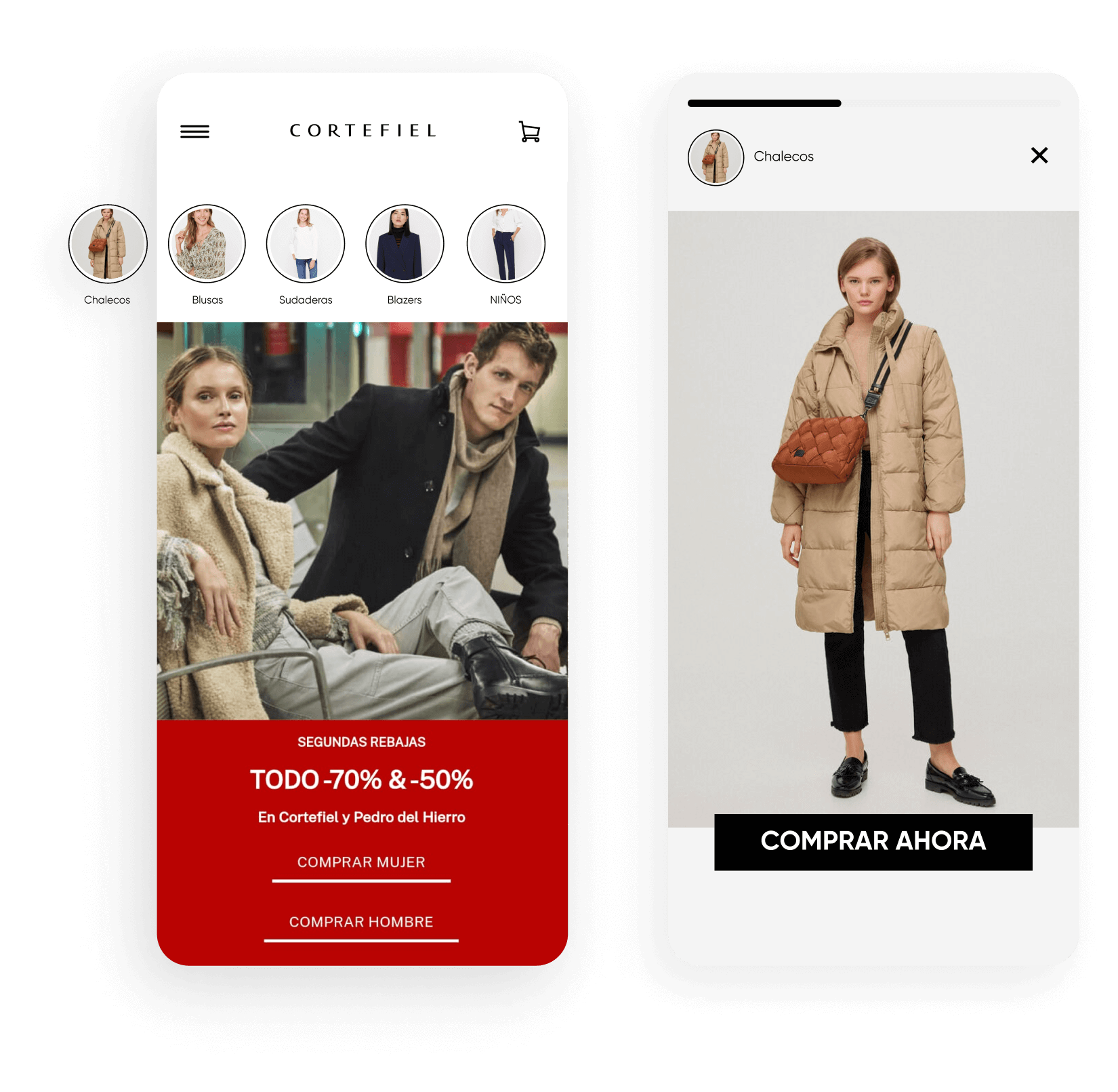 Aumenta la visibilidad y mejora el descubrimiento de productos a través de la navegación como en redes sociales. Con InStory, puedes personalizar stories según los intereses o el comportamiento de los usuarios; las imágenes se expanden en una experiencia inmersiva que tus clientes amarán.