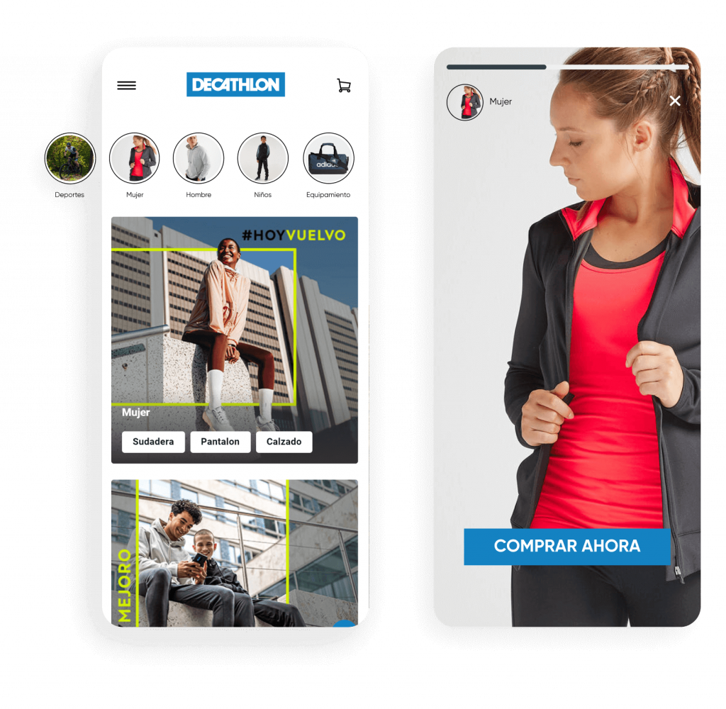 Aumenta la visibilidad y mejora el descubrimiento de productos a través de la navegación como en redes sociales. Con InStory, puedes personalizar stories según los intereses o el comportamiento de los usuarios; las imágenes se expanden en una experiencia inmersiva que tus clientes amarán.