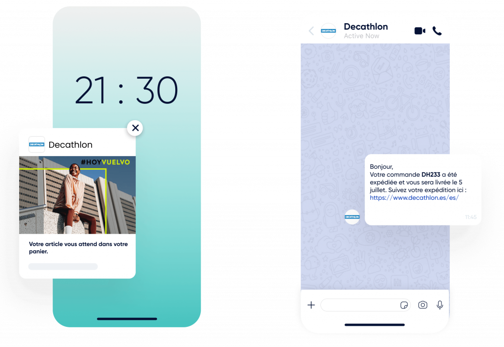 Utiliza notificaciones Web Push, WhatsApp, Facebook Messenger, correo electrónico, SMS y RCS. Envía alertas automáticas y mensajes personalizados con recordatorios de carrito abandonado hasta recordatorios de «back-in-stock» para acelerar las decisiones de compra y recuperar las ventas perdidas.