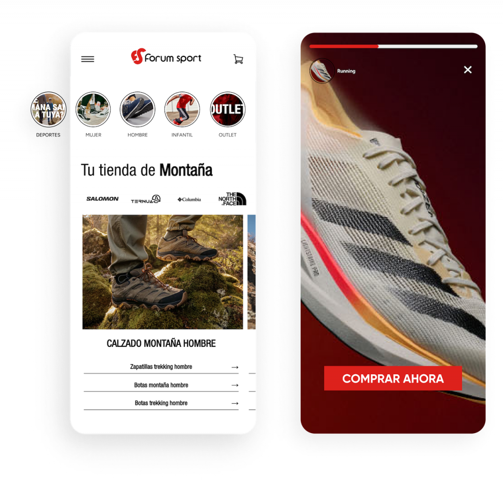 Aumenta la visibilidad y mejora el descubrimiento de productos a través de la navegación como en redes sociales. Con InStory, puedes personalizar stories según los intereses o el comportamiento de los usuarios; las imágenes se expanden en una experiencia inmersiva que tus clientes amarán.