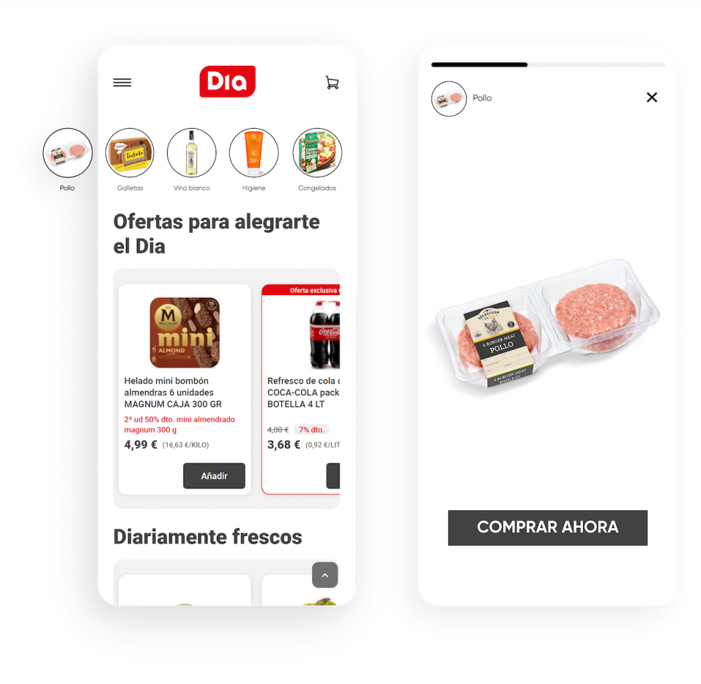 Aumenta la visibilidad y mejora el descubrimiento de productos a través de la navegación como en redes sociales. Con InStory, puedes personalizar stories según los intereses o el comportamiento de los usuarios; las imágenes se expanden en una experiencia inmersiva que tus clientes amarán.