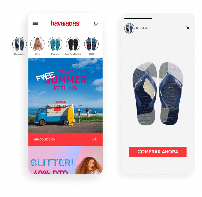 Aumenta la visibilidad y mejora el descubrimiento de productos a través de la navegación como en redes sociales. Con InStory, puedes personalizar stories según los intereses o el comportamiento de los usuarios; las imágenes se expanden en una experiencia inmersiva que tus clientes amarán.