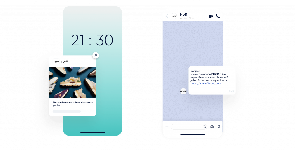 Utiliza notificaciones Web Push, WhatsApp, Facebook Messenger, correo electrónico, SMS y RCS. Envía alertas automáticas y mensajes personalizados con recordatorios de carrito abandonado hasta recordatorios de «back-in-stock» para acelerar las decisiones de compra y recuperar las ventas perdidas.