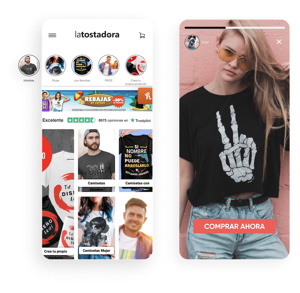 Aumenta la visibilidad y mejora el descubrimiento de productos a través de la navegación como en redes sociales. Con InStory, puedes personalizar stories según los intereses o el comportamiento de los usuarios; las imágenes se expanden en una experiencia inmersiva que tus clientes amarán.