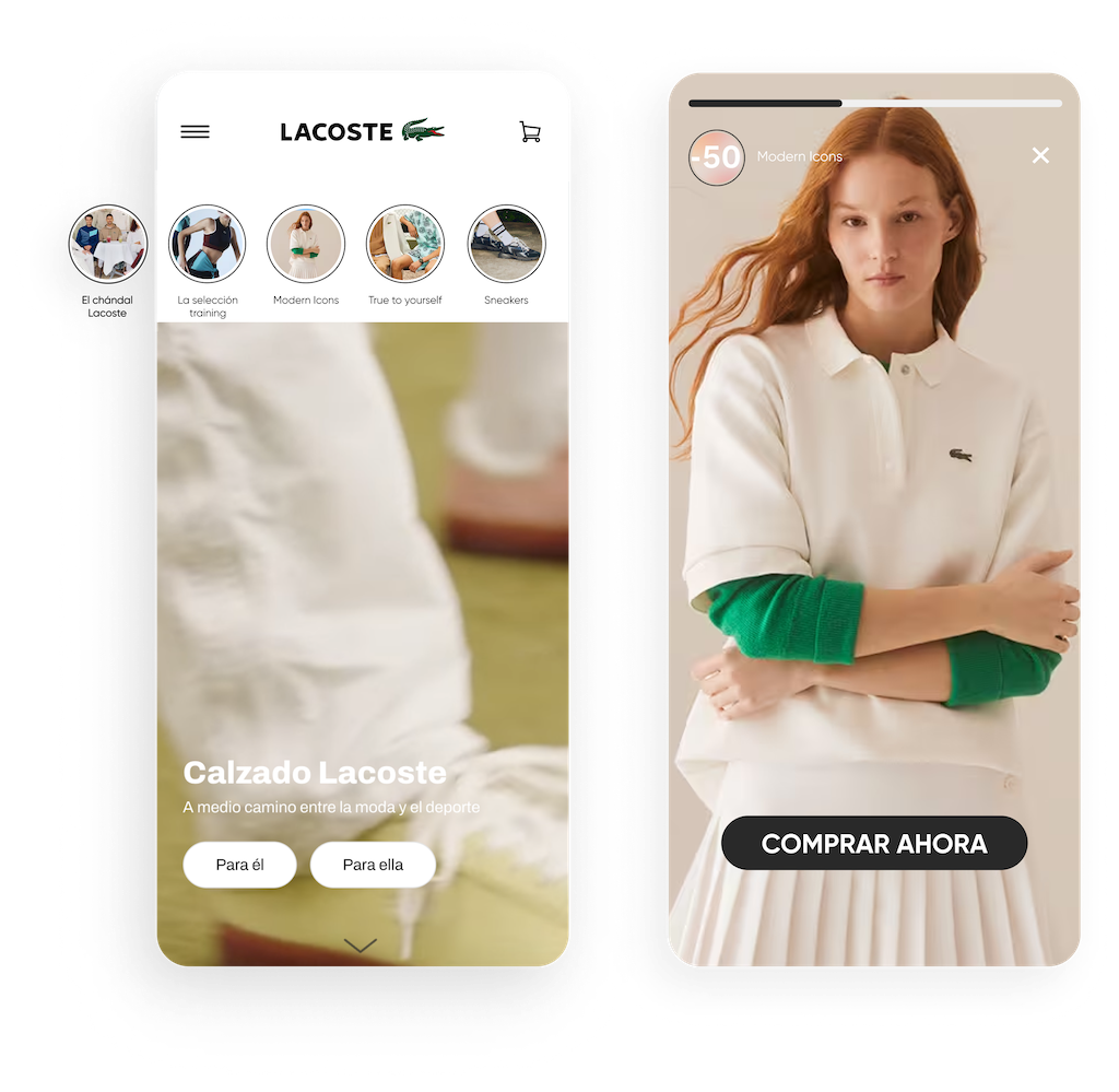 Aumenta la visibilidad y mejora el descubrimiento de productos a través de la navegación como en redes sociales. Con InStory, puedes personalizar stories según los intereses o el comportamiento de los usuarios; las imágenes se expanden en una experiencia inmersiva que tus clientes amarán.