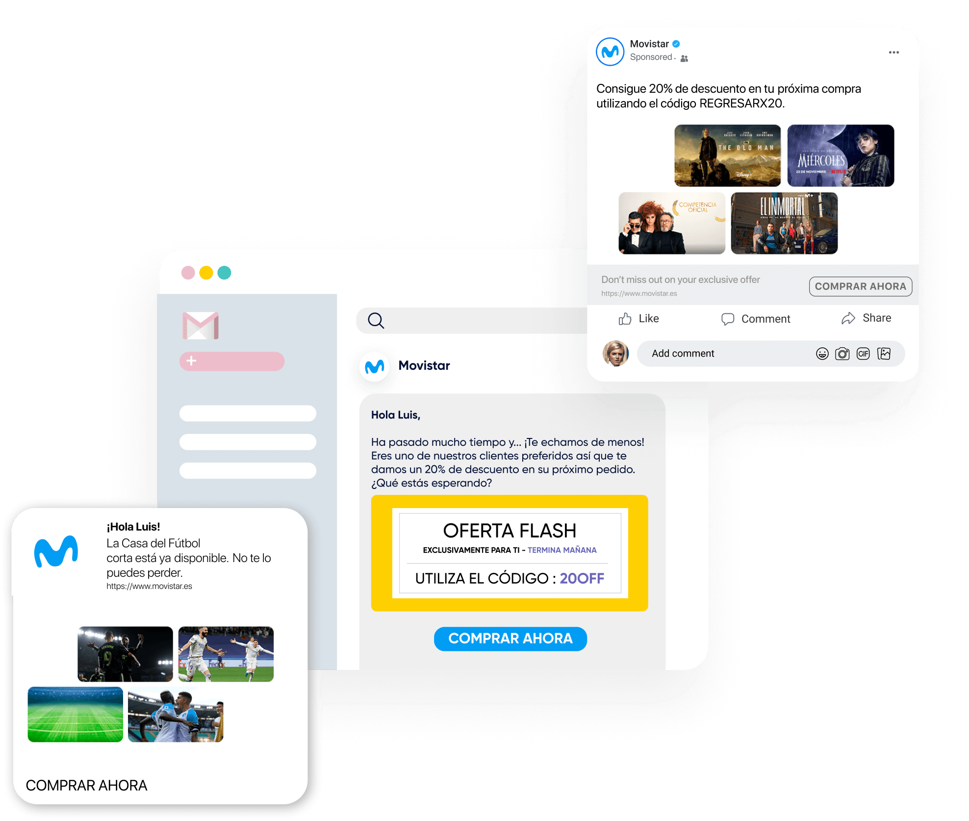 Crea experiencias multicanal potentes y personalizadas que transmitan mensajes relevantes, en el canal preferido del cliente.
