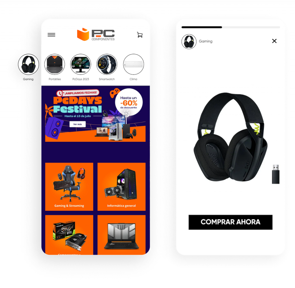 Aumenta la visibilidad y mejora el descubrimiento de productos a través de la navegación como en redes sociales. Con InStory, puedes personalizar stories según los intereses o el comportamiento de los usuarios; las imágenes se expanden en una experiencia inmersiva que tus clientes amarán.