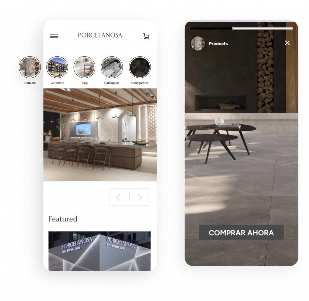 Aumenta la visibilidad y mejora el descubrimiento de productos a través de la navegación como en redes sociales. Con InStory, puedes personalizar stories según los intereses o el comportamiento de los usuarios; las imágenes se expanden en una experiencia inmersiva que tus clientes amarán.