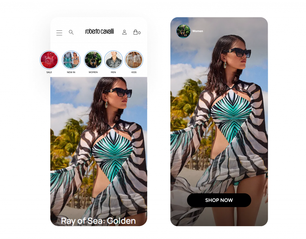 Aumenta la visibilidad y mejora el descubrimiento de productos a través de la navegación como en redes sociales. Con InStory, puedes personalizar stories según los intereses o el comportamiento de los usuarios; las imágenes se expanden en una experiencia inmersiva que tus clientes amarán.