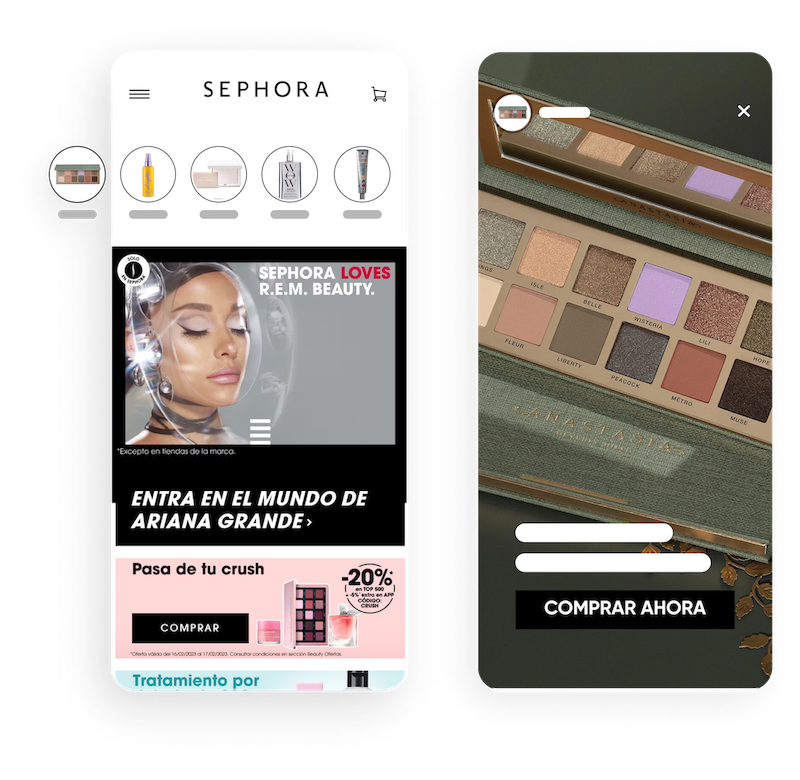 Aumenta la visibilidad y mejora el descubrimiento de productos a través de la navegación como en redes sociales. Con InStory, puedes personalizar stories según los intereses o el comportamiento de los usuarios; las imágenes se expanden en una experiencia inmersiva que tus clientes amarán.