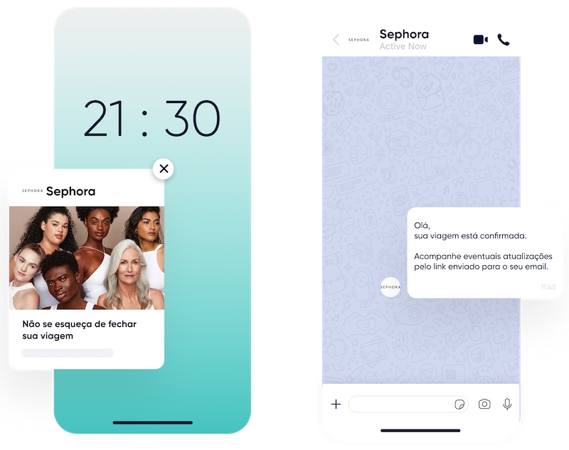 Utiliza notificaciones Web Push, WhatsApp, Facebook Messenger, correo electrónico, SMS y RCS. Envía alertas automáticas y mensajes personalizados con recordatorios de carrito abandonado hasta recordatorios de «back-in-stock» para acelerar las decisiones de compra y recuperar las ventas perdidas.