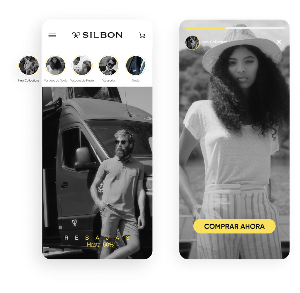 Aumenta la visibilidad y mejora el descubrimiento de productos a través de la navegación como en redes sociales. Con InStory, puedes personalizar stories según los intereses o el comportamiento de los usuarios; las imágenes se expanden en una experiencia inmersiva que tus clientes amarán.