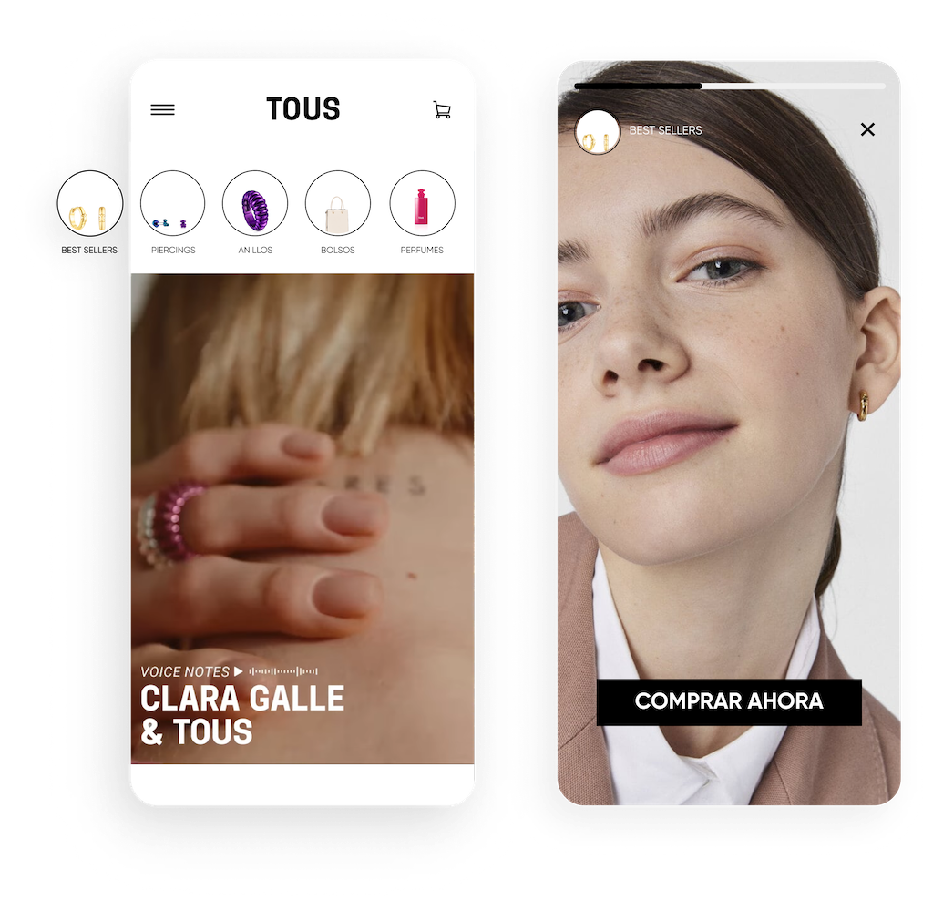 Aumenta la visibilidad y mejora el descubrimiento de productos a través de la navegación como en redes sociales. Con InStory, puedes personalizar stories según los intereses o el comportamiento de los usuarios; las imágenes se expanden en una experiencia inmersiva que tus clientes amarán.