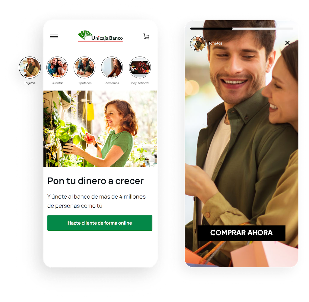 Aumenta la visibilidad y mejora el descubrimiento de productos a través de la navegación como en redes sociales. Con InStory, puedes personalizar stories según los intereses o el comportamiento de los usuarios; las imágenes se expanden en una experiencia inmersiva que tus clientes amarán.