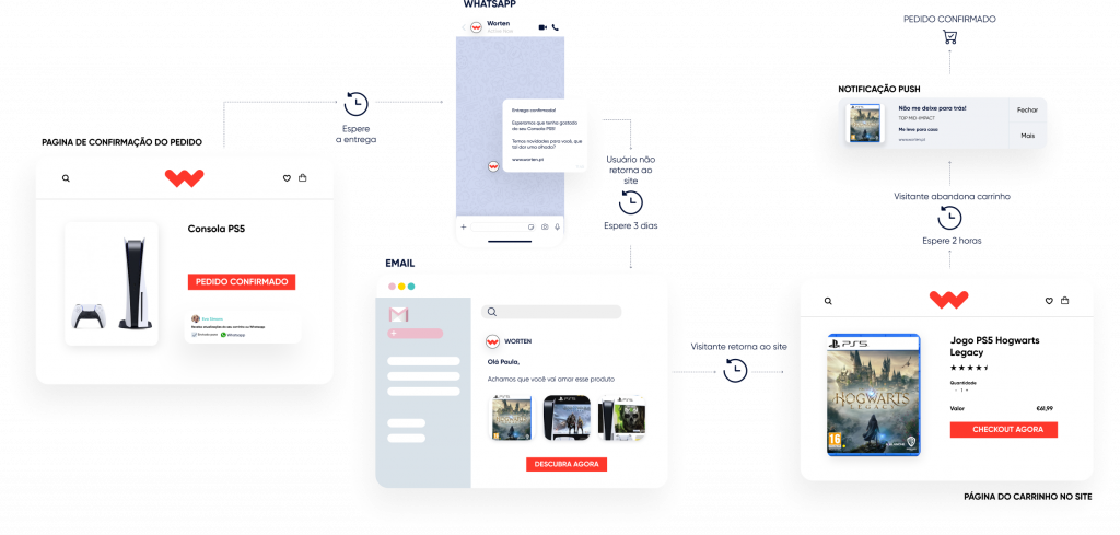 Envie alertas automatizados e mensagens personalizadas, desde lembretes de carrinho abandonado até reposição de estoque para acelerar as decisões de compra e recuperar vendas perdidas.