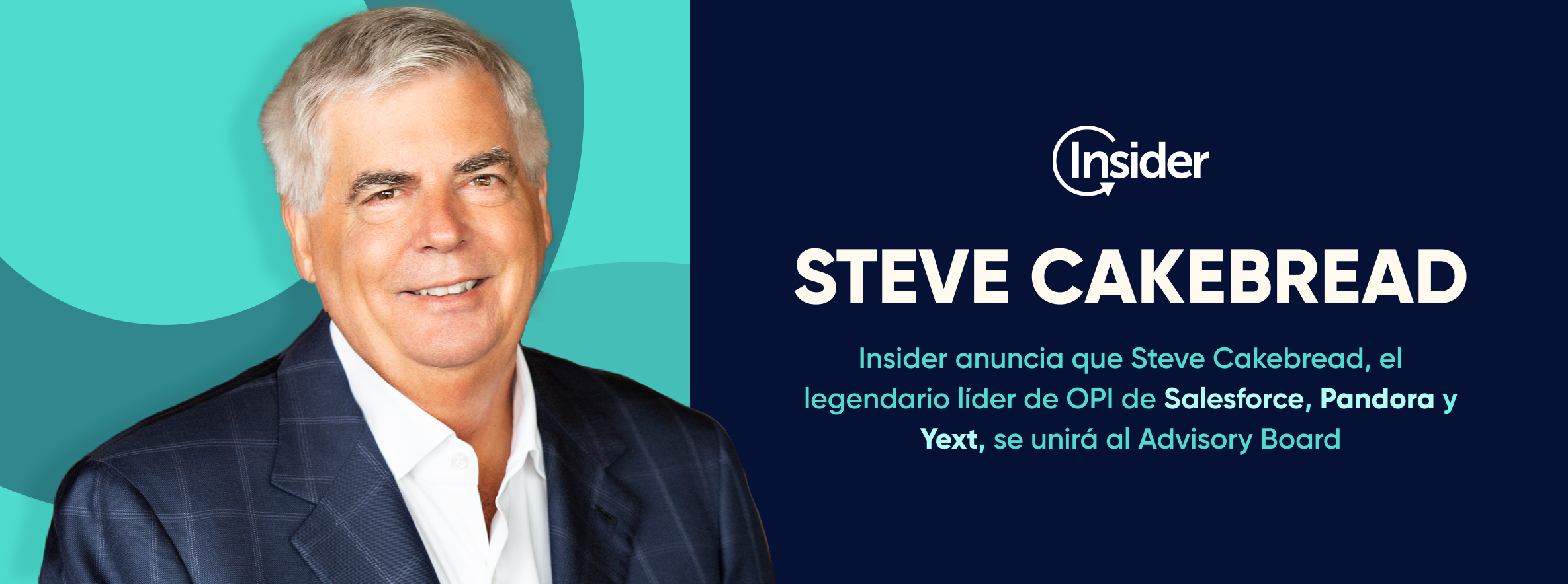 «Estoy encantado de dar la bienvenida a Steve Cakebread al consejo asesor de Insider One», dijo Hande Cilingir, cofundadora y directora ejecutiva de Insider One. «Es difícil imaginar a alguien con más experiencia en el mercado de capitales o en OPI que Steve, habiendo liderado tres empresas privadas hasta sus OPI. El gran conocimiento de Steve sobre cómo crear equipos, políticas, procedimientos y controles que respalden el crecimiento de una empresa será invaluable. En este puesto, Steve puede ofrecer su orientación, conocimientos y experiencias de Salesforce, Pandora y Yext. Espero trabajar juntos para explorar nuevas formas de acelerar nuestro producto líder en el mercado, incluidas posibles fusiones y adquisiciones, para brindar un mejor servicio a nuestros clientes y brindar valor continuo a nuestros stakeholders. Existe A Brand New Way™ para crear experiencias de cliente, razón por la cual existe Insider One. No puedo esperar para ver qué impacto tendrán la orientación y los conocimientos de Steve en nuestro negocio; su experiencia en la IPO es exactamente lo que necesitamos para navegar el próximo capítulo de Insider.“