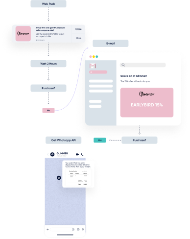Con un usuario medio activo en seis o más canales, tienes que estar donde ellos están. Atrae a millones de usuarios que ya están activos en canales de mensajería como WhatsApp Business y Facebook Messenger con mensajes personalizados.