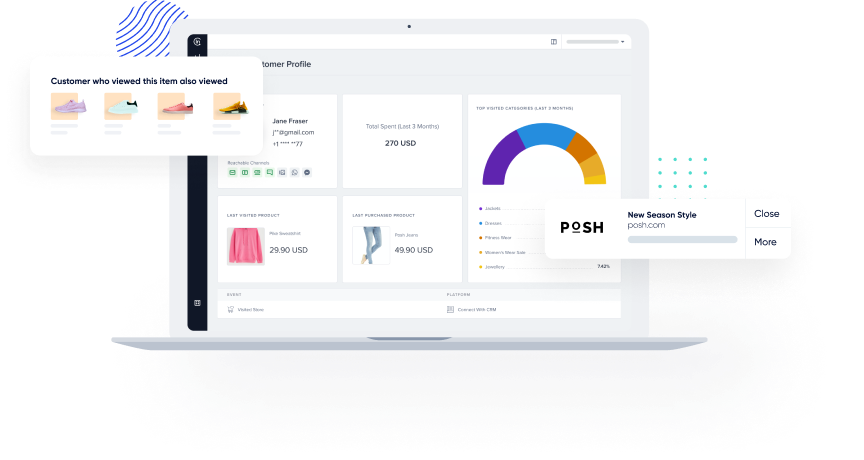 Dirige la atención de cualquier usuario —aunque no esté en tu página— a donde tú quieras y haz que las conversiones suban como la espuma con notificaciones web push. Notificaciones a medida perfectamente sincronizadas.