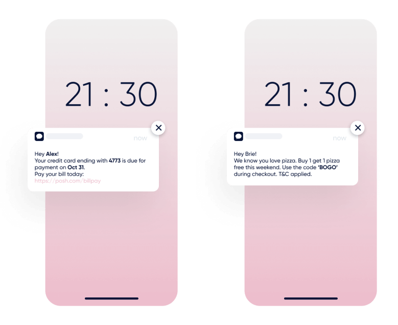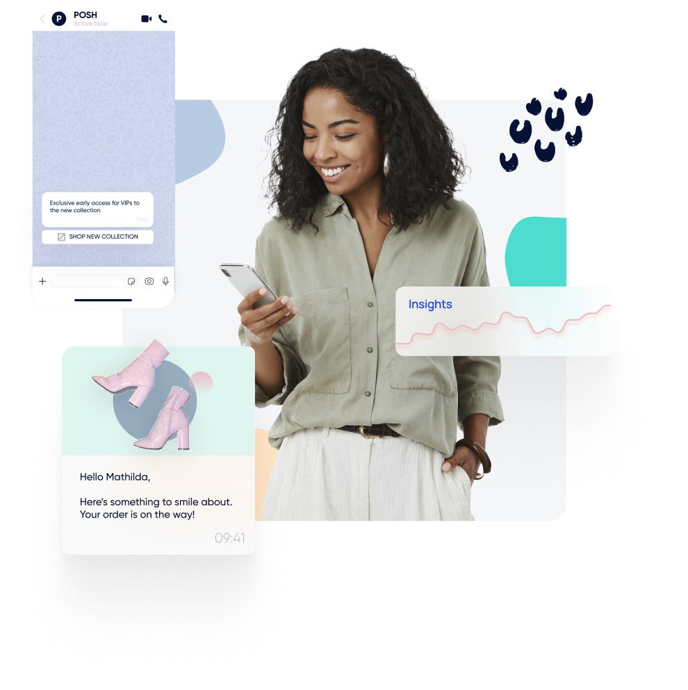 Cree mensajes de texto personalizados, contextuales y oportunos que contengan confirmaciones de compra, actualizaciones de pedidos, promociones, citas y más para cada usuario. Manténgalos comprometidos y muéstreles a los usuarios el valor que su marca aporta a su vida diaria.