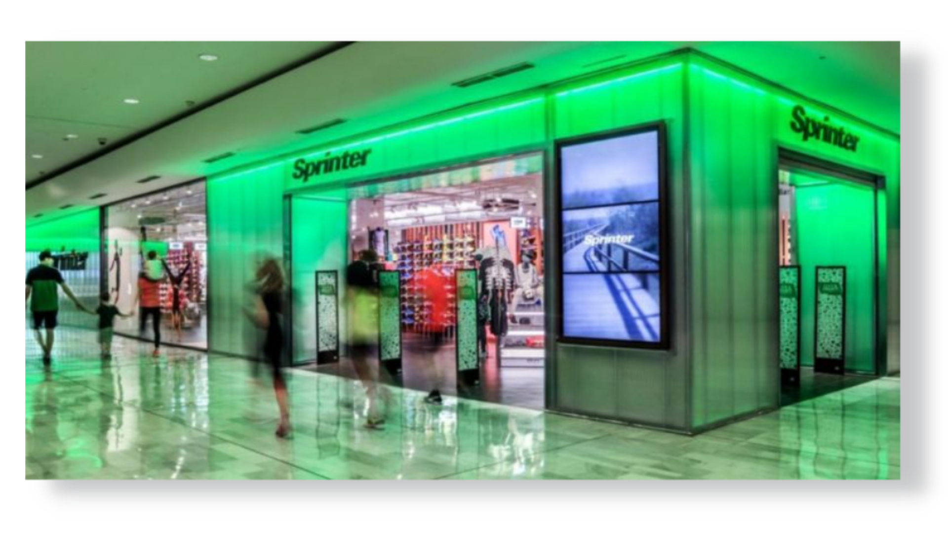 Tal y como lo cuentan ellos mismos «Sprinter es el lugar de encuentro para gente que vive deportivamente. Para esas personas que se levantan por la mañana, llevan los niños al colegio, trabajan 8 horas, y vuelven a casa para ponerse las zapatillas y salir a correr. Para esas heroínas que sacan tiempo de donde no lo hay para ir al gym, y saben que unas buenas zapatillas de deporte estilizan más la figura que unos tacones. Para todos aquellos que eligen la comodidad a la hora de vestir, sin sacrificar el estilo«. Sprinter cuenta con una amplia gama de productos de marcas internacionales como adidas, Nike, Fila, Asics y Puma. Su oferta de moda deportiva y de performance además se complementa con muchos modelos diseñados en exclusiva.