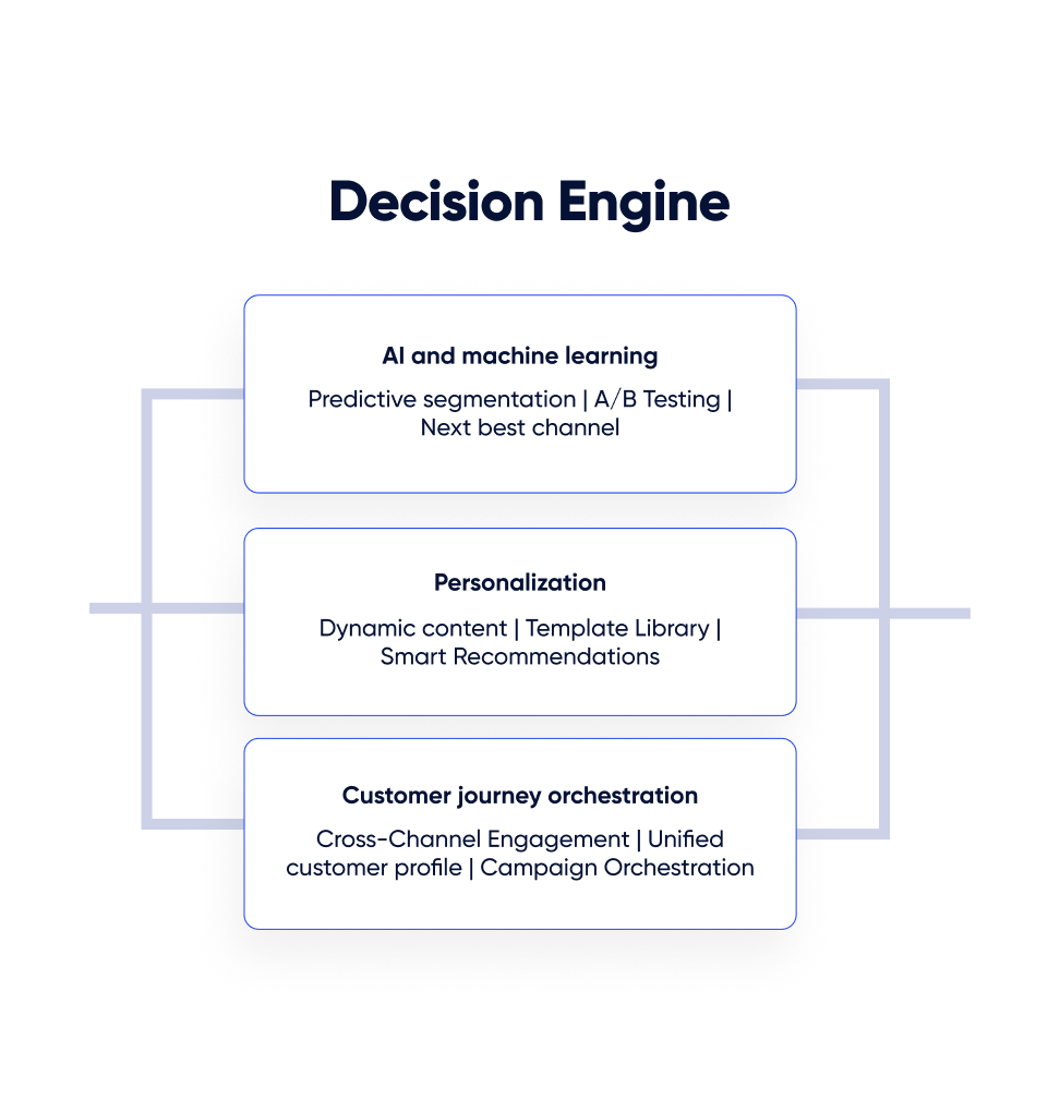 Elevate your engagement, conversion, and retention metrics with machine learning algorithms that power advanced features like send time optimization and next best channel. Optimize send times, channels, devices, journey paths, recommendations, and offers.