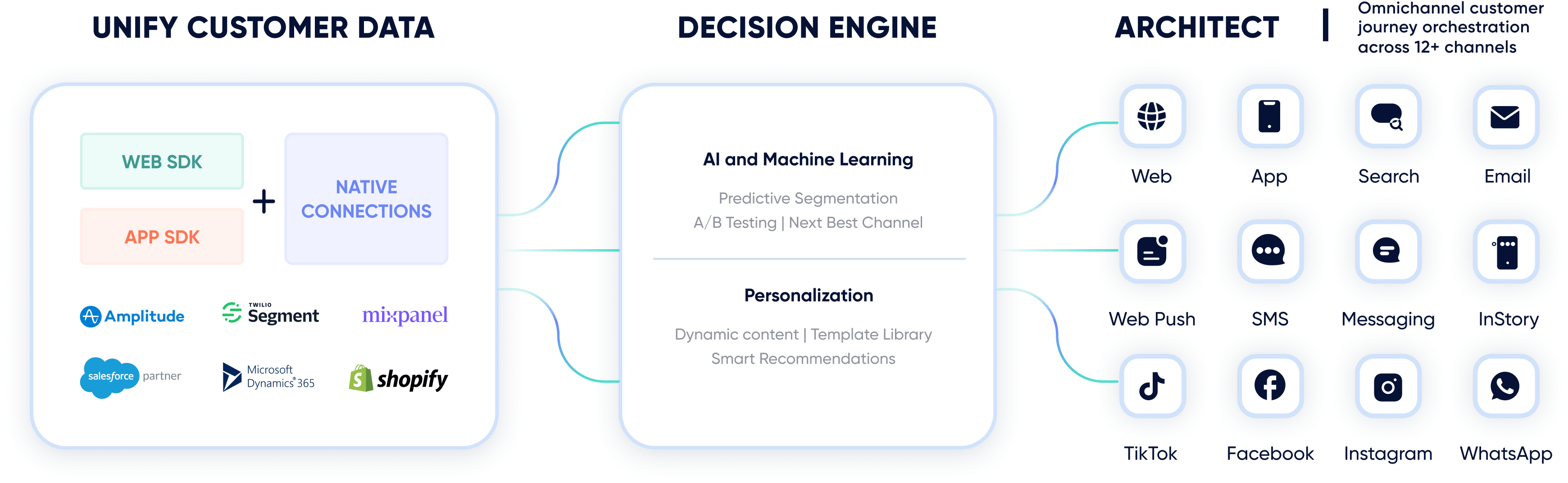 Elevate your engagement, conversion, and retention metrics with machine learning algorithms that power advanced features like send time optimization and next best channel. Optimize send times, channels, devices, journey paths, recommendations, and offers.