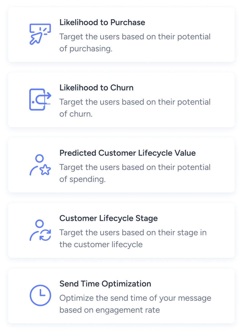 Simply input your use case and expected outcome, then let Sirius AI™ create ready-to-use segments for your business goal—whether it’s engagement, conversions, or both.