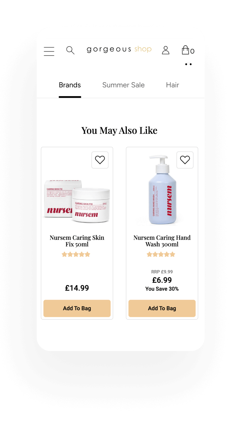 La fonctionnalité préférée de Gorgeous Shop et Beauty Flash reste le Smart Recommender d'Insider, dont les algorithmes personnalisés enrichissent la découverte produit et boostent l’engagement et les revenus.