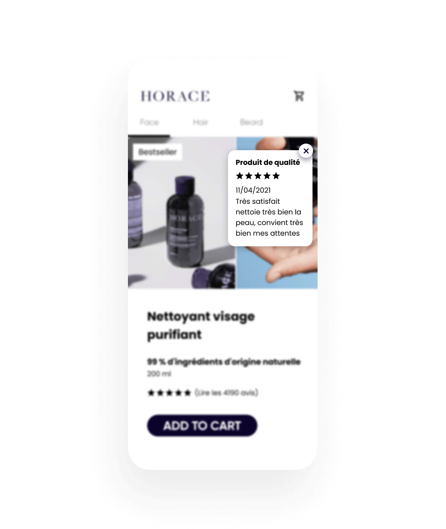 En mettant en avis les avis positifs sur les page produits, les visiteurs se sentent en confiance et rassurés d'essayer un nouveau produit, ce qui les conduit à finaliser leur achat.