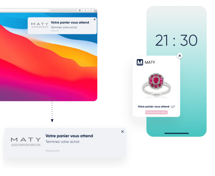 Les notifications web push d’abandon de chariot ont été très efficaces et ont permis à MATY d’atteindre un taux de conversion de 9,86 % de ces « abandonneurs ».