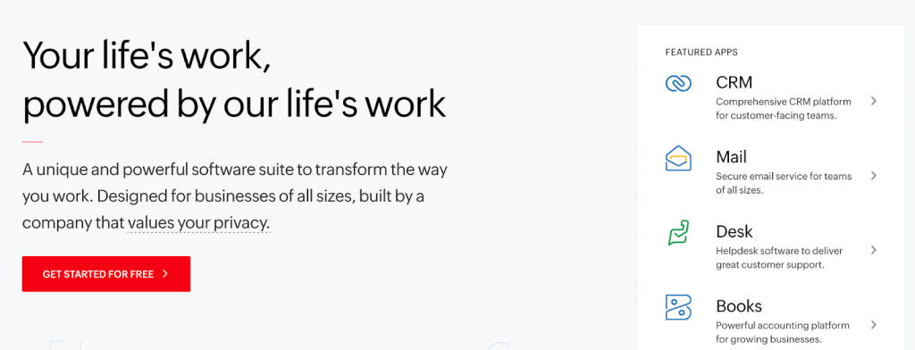 En tant que plateforme CRM, Zoho se concentre principalement sur l’engagement des utilisateurs à différentes étapes du cycle de vie des ventes et des clients en utilisant des canaux comme le courriel, le clavardage en direct et les médias sociaux.