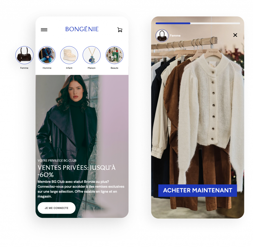Augmentez la visibilité et améliorez la découverte produits grâce à la navigation, comme sur les réseaux sociaux. Avec InStory, vous pouvez personnaliser les histoires en fonction des intérêts ou du comportement des utilisateurs ; vos images se transforment en une expérience immersive que vos clients vont adorer.