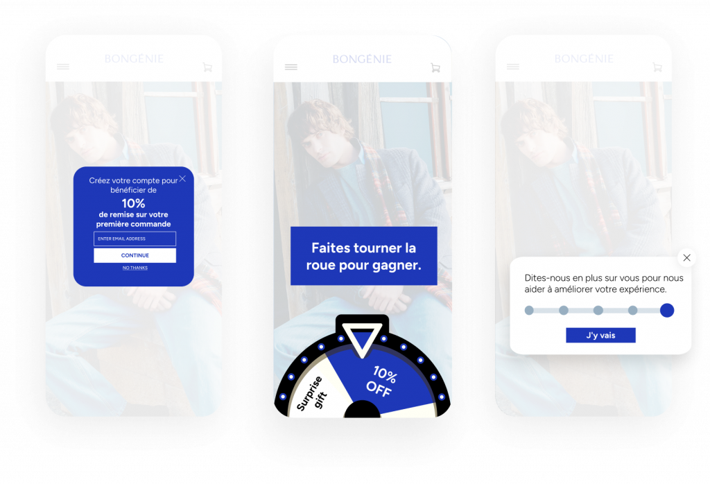 Créez une expérience engageante et gratifiante qui encourage les visiteurs à partager leurs informations avec vous. Accompagnez vos clients pas à pas, depuis leur tout premier achat jusqu’à leur fidélisation à long terme.