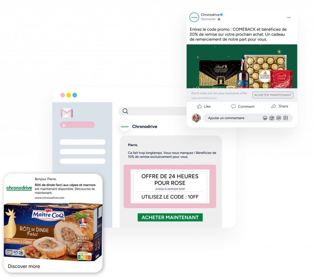Utilisez les notifications Web Push, WhatsApp, les e-mails et les SMS.