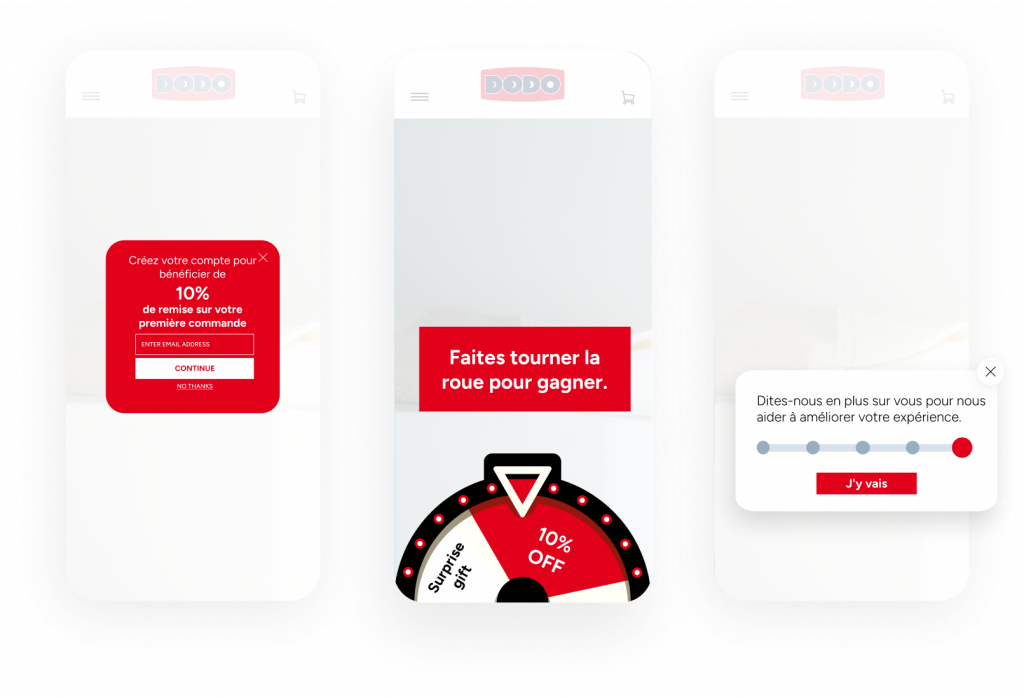 Créez une expérience engageante et gratifiante qui encourage les visiteurs à partager leurs informations avec vous. Accompagnez vos clients pas à pas, depuis leur tout premier achat jusqu’à leur fidélisation à long terme.