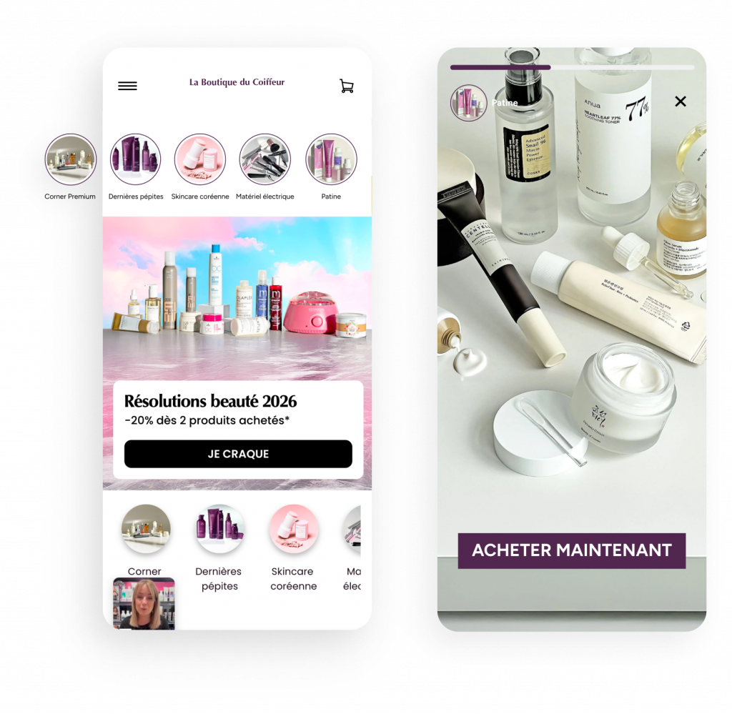 Augmentez la visibilité et améliorez la découverte de vos produits grâce à la navigation, comme sur les réseaux sociaux. Avec InStory, vous pouvez personnaliser les histoires en fonction des intérêts ou du comportement des utilisateurs ; vos images se transforment en une expérience immersive que vos clients vont adorer.
