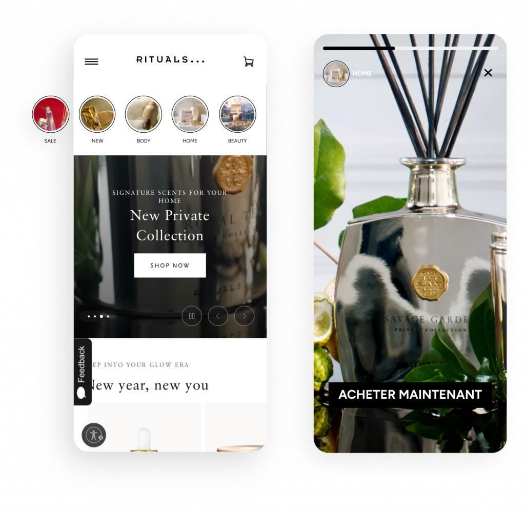 Augmentez la visibilité et améliorez la découverte de vos produits grâce à la navigation, comme sur les réseaux sociaux. Avec InStory, vous pouvez personnaliser les histoires en fonction des intérêts ou du comportement des utilisateurs ; vos images se transforment en une expérience immersive que vos clients vont adorer.