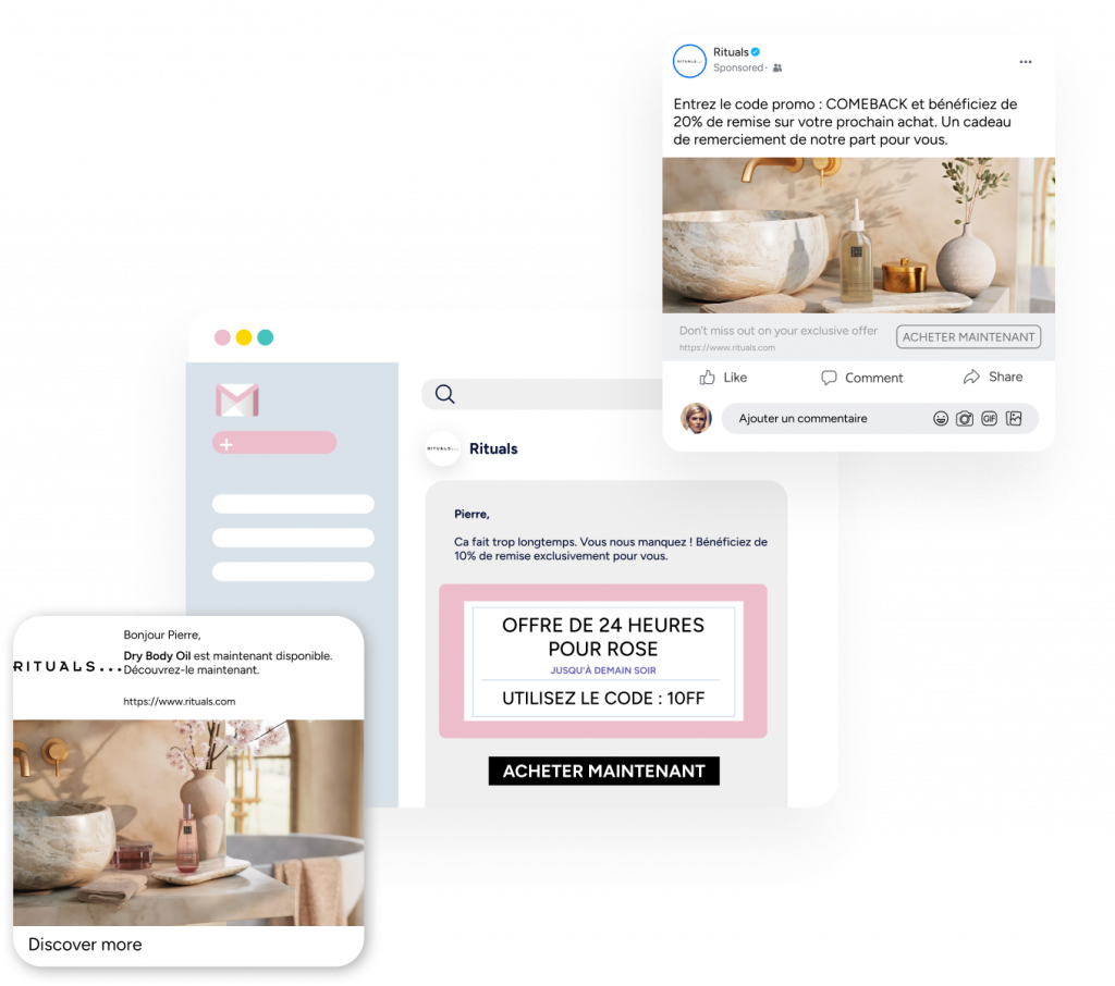 Créez des expériences multi-canal puissantes et personnalisées qui délivrent des messages pertinents, sur le canal préféré du client.