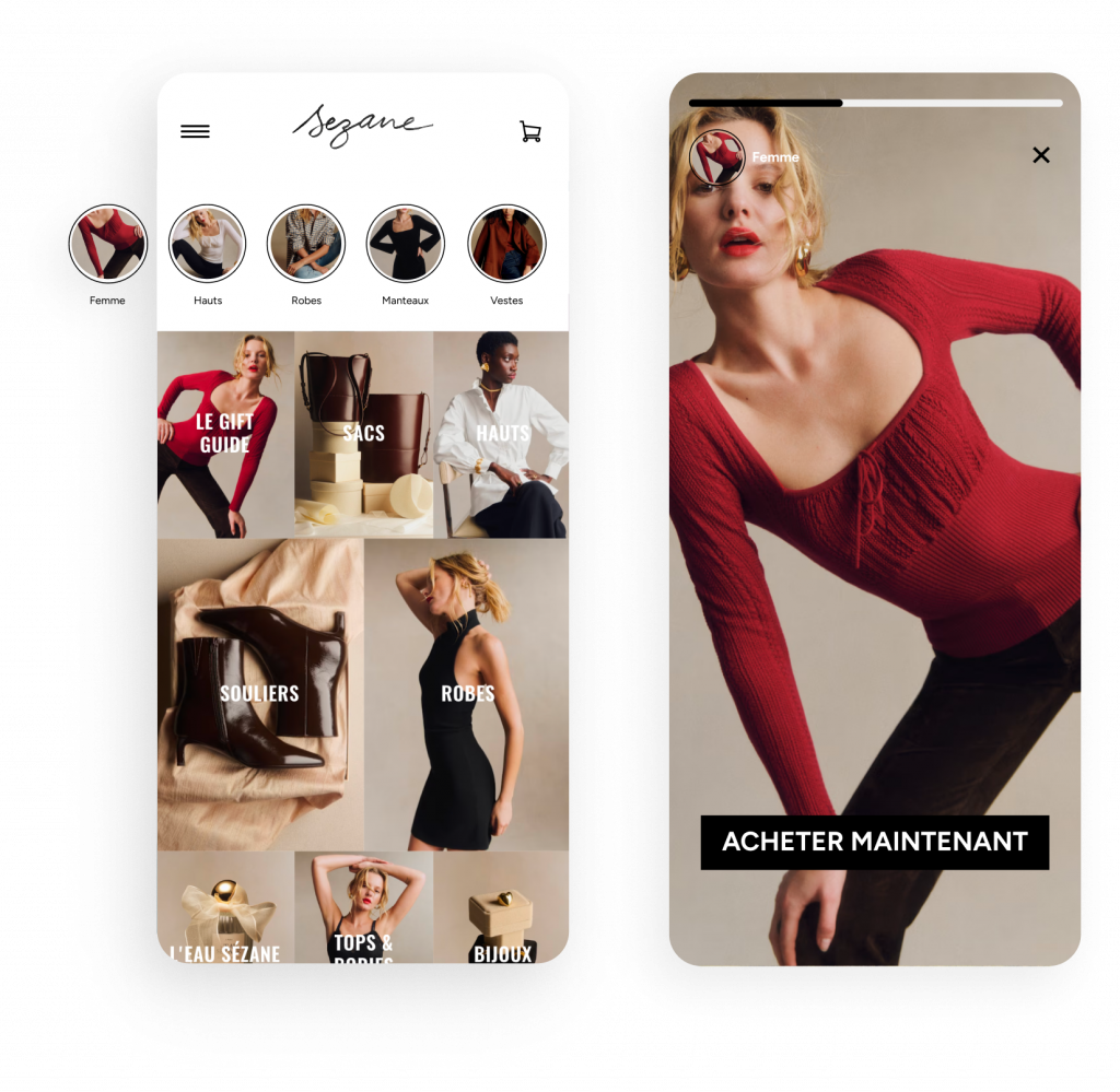Augmentez la visibilité et améliorez la découverte produits grâce à la navigation, comme sur les réseaux sociaux. Avec InStory, vous pouvez personnaliser les histoires en fonction des intérêts ou du comportement des utilisateurs ; vos images se transforment en une expérience immersive que vos clients vont adorer.