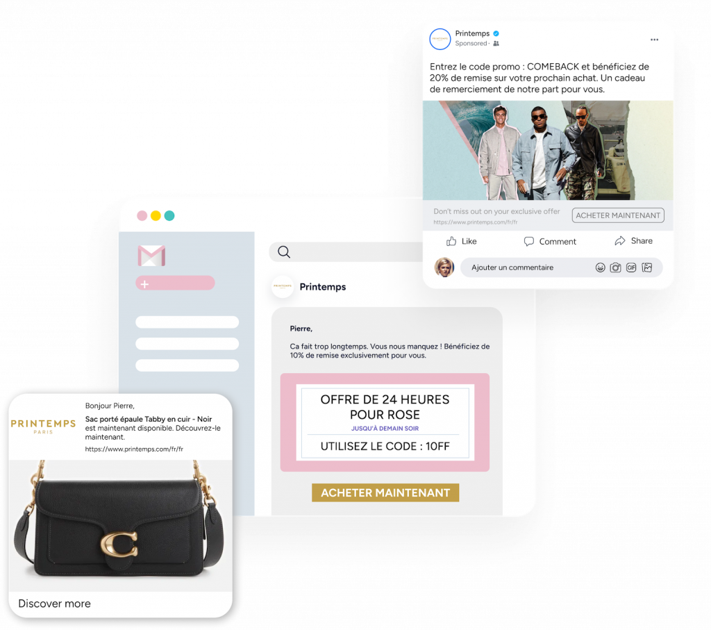 Créez des expériences multi-canal puissantes et personnalisées qui délivrent des messages pertinents, sur le canal préféré du client.