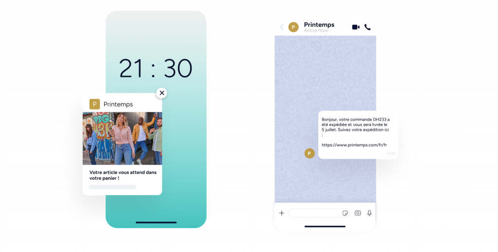 Utilisez les notifications Web Push, WhatsApp, les e-mails et les SMS.