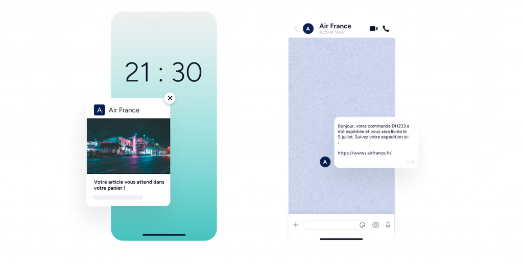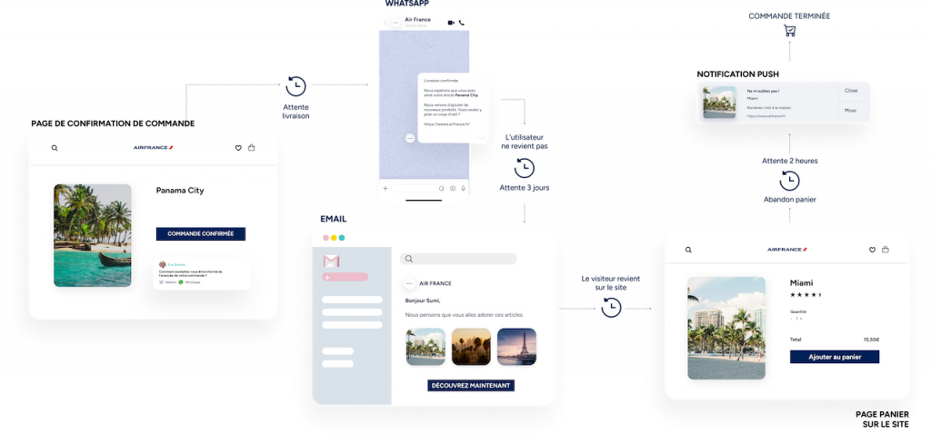 Utilisez les notifications Web Push, WhatsApp, les e-mails, et les SMS.